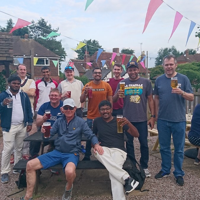 So the Allstars were in high spirits again as everyone celebrated a great game of cricket in the Star Inn afterwards. Matfield were generous and sociable opponents, and we look forward to visiting them again next year. Many thanks to everyone for playing, to Haroon Khalid for driving down with the kit, and to Chris’s daughter Charlotte for devotedly watching us play all afternoon.