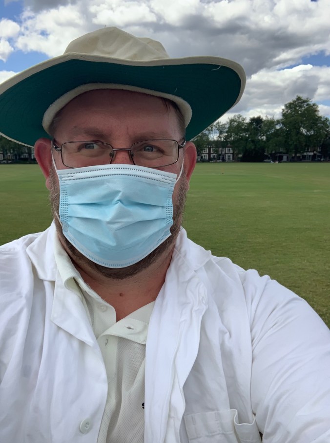 After taking our own teas (COVID restrictions meaning we had to forgo our usual shared tea), the Corridor innings began in bright sunshine. Debutant Sam Waddicor generated pace and swing from one end, while Sachin managed to generate an edge that flew through the social distancing gap between keeper Cresswell and Samer at wide slip, as Corridor began steadily until Sachin made the first breakthrough as he held on to a return catch in his third over to remove Corridor skipper Duncan Mallard. Corridor’s second wicket pair then feasted on some slower bowling from Burgin and Parkin until the aggressive Davies was deceived in flight by Burgin and bowled, making the score 63/2 in the 10th.