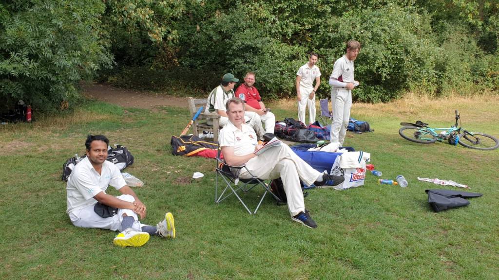 After the heatwave came the cloud and rain. At the Ageas Bowl, farcical scenes as rain and bad light led to the least amount of play in an England home Test for 33 years. Down in Kent, our old foes the Rain Men lived up to their name as only two overs were possible before their game was abandoned. But we were to have much better fortune with the weather, as the showers only briefly touched Barnes Common as we avenged last year’s defeat against Vivek’s Zambuca Tigers, putting in another excellent team performance to win for the second Sunday in succession.