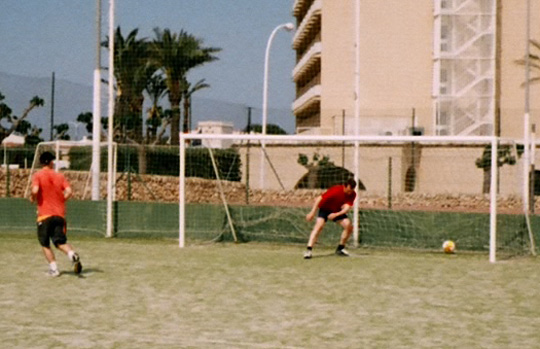The afternoon football match was a hearty affair, chiefly memorable for Garreth’s eye-catching goalkeeping. While awaiting our turn on the pitch, we’d watched some local youths play with great skill and not once allow the ball to ricochet over the perimeter fence into the trees beyond. When we played, we lost the ball four times in the first ten minutes. After one such occasion, when we’d finally retrieved the ball at great and painstaking length from the dense thicket, play restarted. There was an attacking move on Garreth’s goal, and the ball was punted towards him at some height. Garreth pinned his arms to his sides, and shot up like a jack-in-the-box – heading the ball some forty yards directly up in the air and then over the fence. It was a header of such genuine perfection, so truly and sweetly did his head connect with the ball, that it would have absolutely impossible to have done on purpose. But it was hard not to be puzzled by why he’d done it. “I thought I was out of my area”, he explained.