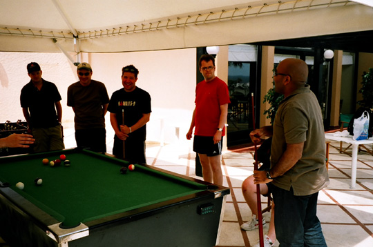 Once checked in, we headed into the Menorcan capital Mahon in search of nightlife, only to find that almost everywhere was closed. We at length happened upon an interesting venue, in which we proceeded to enjoy one of the most celebrated nights in Allstars history. The in-house entertainment revolved around the simple axiom of taking it in turns to stand on a table and sing along loudly to rock songs. As you would expect, Jason Nixon was very much in his element, but it fell to Devers to steal the show. Atop his table, he led the way in a deeply moving rendition of the Smokie classic Living Next Door To Alice.