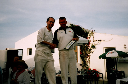 The fourth Allstars tour, and for the first time, a foreign destination. The inspiration came from Garreth, who had seen an article in a newspaper travel section about Menorca CC in the Balearics, who host touring sides each weekend. I got in touch with the club, and the deal was on. It proved to be one of the easier trips to organise, and the combination of convenient dates and an attractive venue prompted a record-breaking tour party of no fewer than seventeen. As we looked ahead to the trip, we were all excited by the prospect – and we were not to be disappointed.