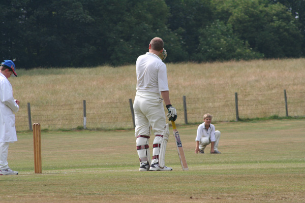 Eglingham withdrew from the local league last year in order to concentrate on friendlies and developing local youngsters, and Maurice had informed me before the game that he would “play some kids”. I was surprised to find out that this meant that at least half the team they fielded was under 16. Given that we couldn’t see their faces under the now-compulsory helmets, some wondered whether the succession of lads coming out to bat were in fact one and the same player.