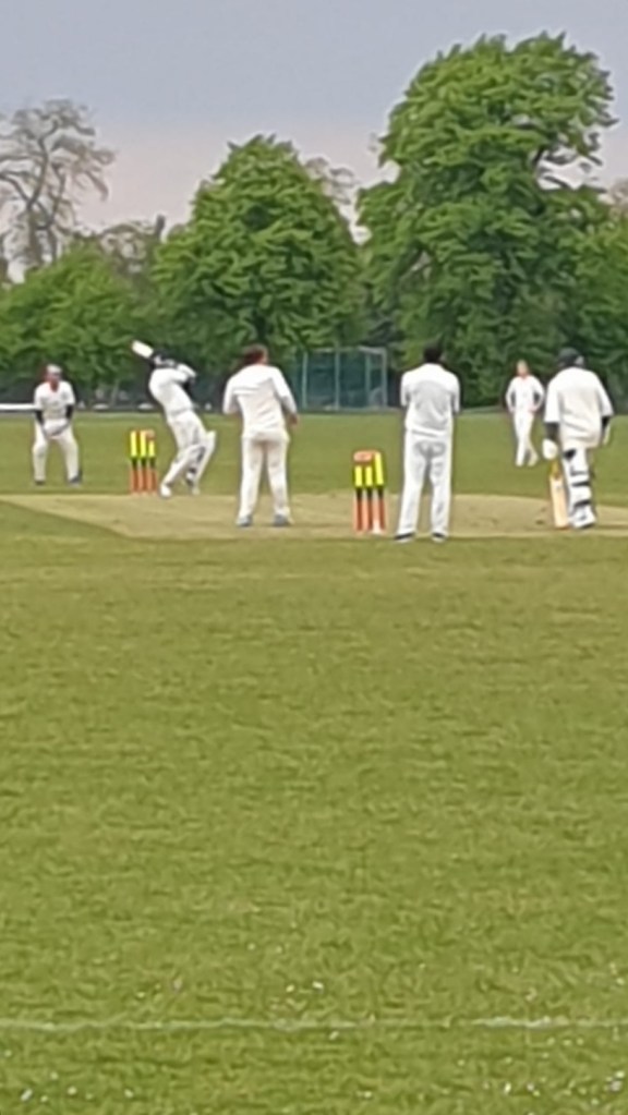 A good start always helps – but we couldn’t have got off to a worse one as Pete Cresswell uncharacteristically hit Jamieson to cover in the opening over. At the rarefied position of number three, I scrambled to get my pads on and reach the crease – only to edge my second ball behind as keeper Webb took a stunning catch.