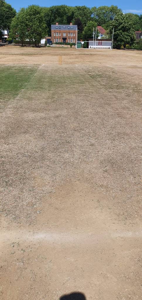 The ground in Highgate was a new venue for us, and we had some welcome support as Sam Waddicor’s lovely lady Chloe and her parents joined us for the afternoon. With the heatwave not yet over, we were greeted by a flat-looking pitch and a parched, grassless outfield. Skipper Pete Cresswell, to much relief, won the toss and chose to bat.