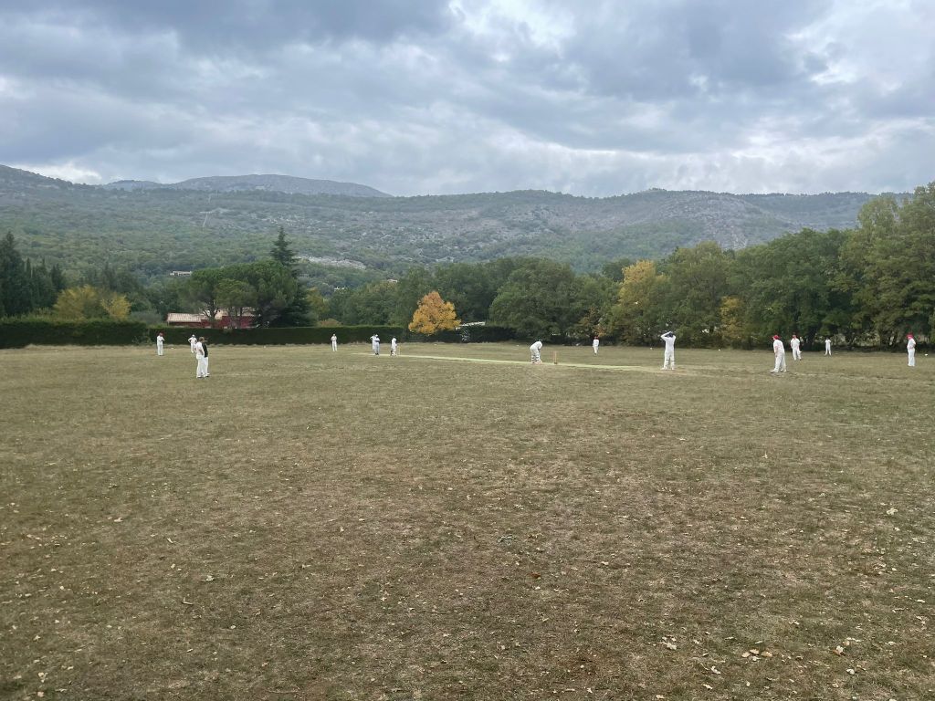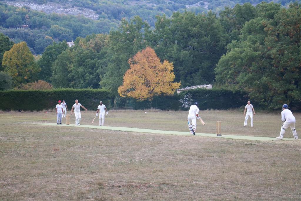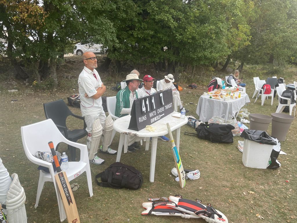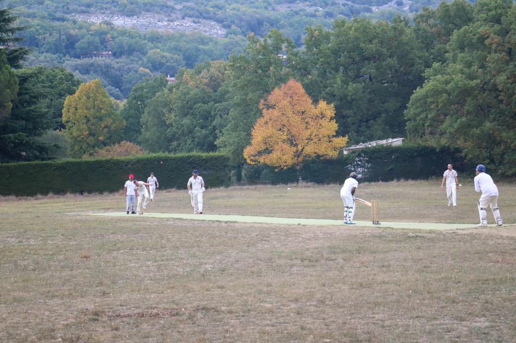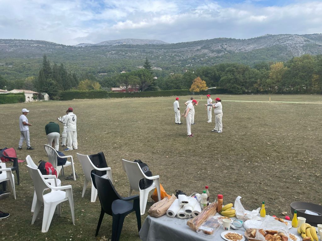 Riviera’s captain Kaleem Sheikh generously suggested we play a 12-a-side game to ensure everyone got some cricket, and Vivek Seth – having heard what Riviera had done to his other club the Zambuca Tigers the previous weekend – volunteered to join our opposition almost immediately in true French fashion.