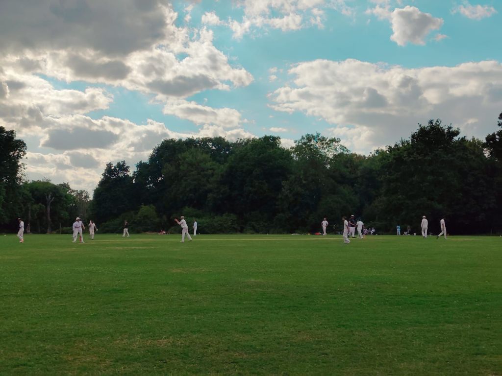 Nick Charlton and Smith repaired some of the early damage, and with the Barnes Common outfield as fast as ever, anything that pierced the infield was running away for boundaries. The fifty was raised – but skipper Sheahan soon found the right length, and broke the stand by bowling Smith. Next over, Gabriel Radomic was run out in a comical mix-up, both batsmen ending up at the same end. Jimmy Scott then bowled Cass with a grubber, and just before the halfway point Wanderers were 77-5 and we looked in firm control.