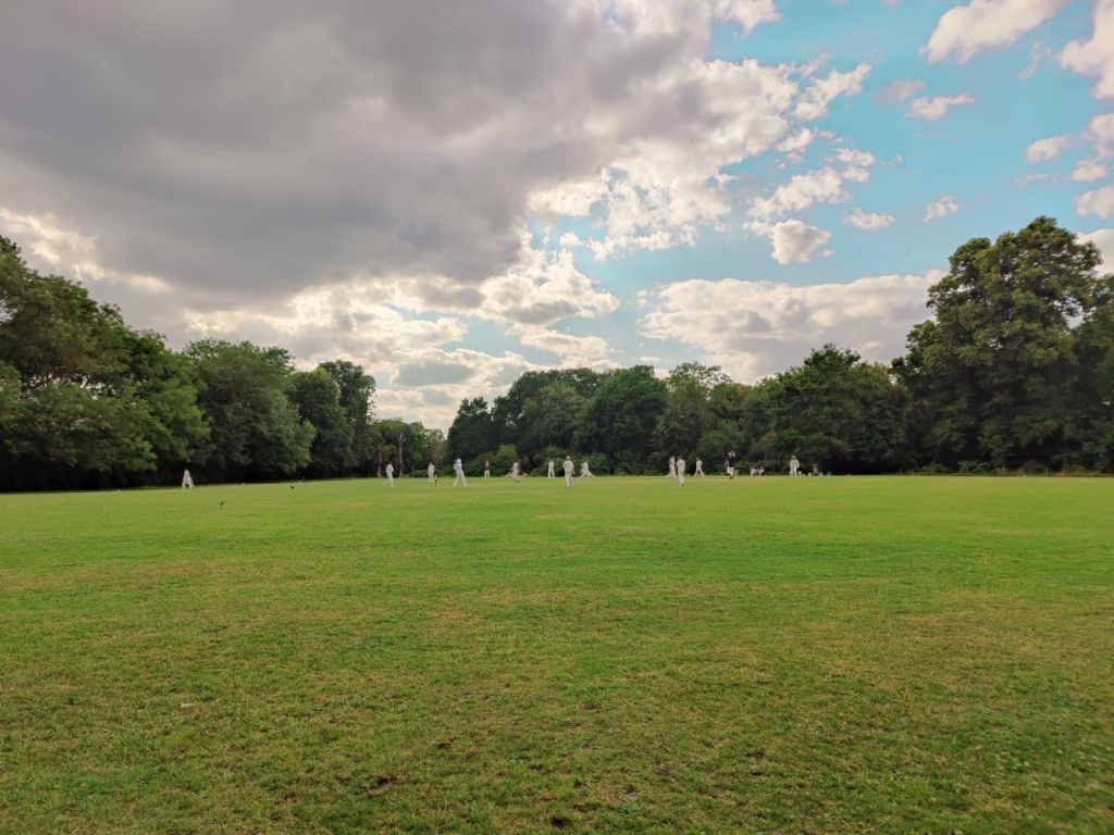 The fall of the fifth wicket brought Wanderers’ skipper Knight to the crease, and together with Nick Charlton, he pulled Wanderers right back into the game. Both were particularly strong hitting in the V between mid-off and mid-on, as well as putting away anything straying leg-side, and the inevitable Barnes Common ball-searching delays began. Visibility wasn’t helped by trying three different colour balls – white, orange and then pink – and the game looked to be rapidly running away from us.