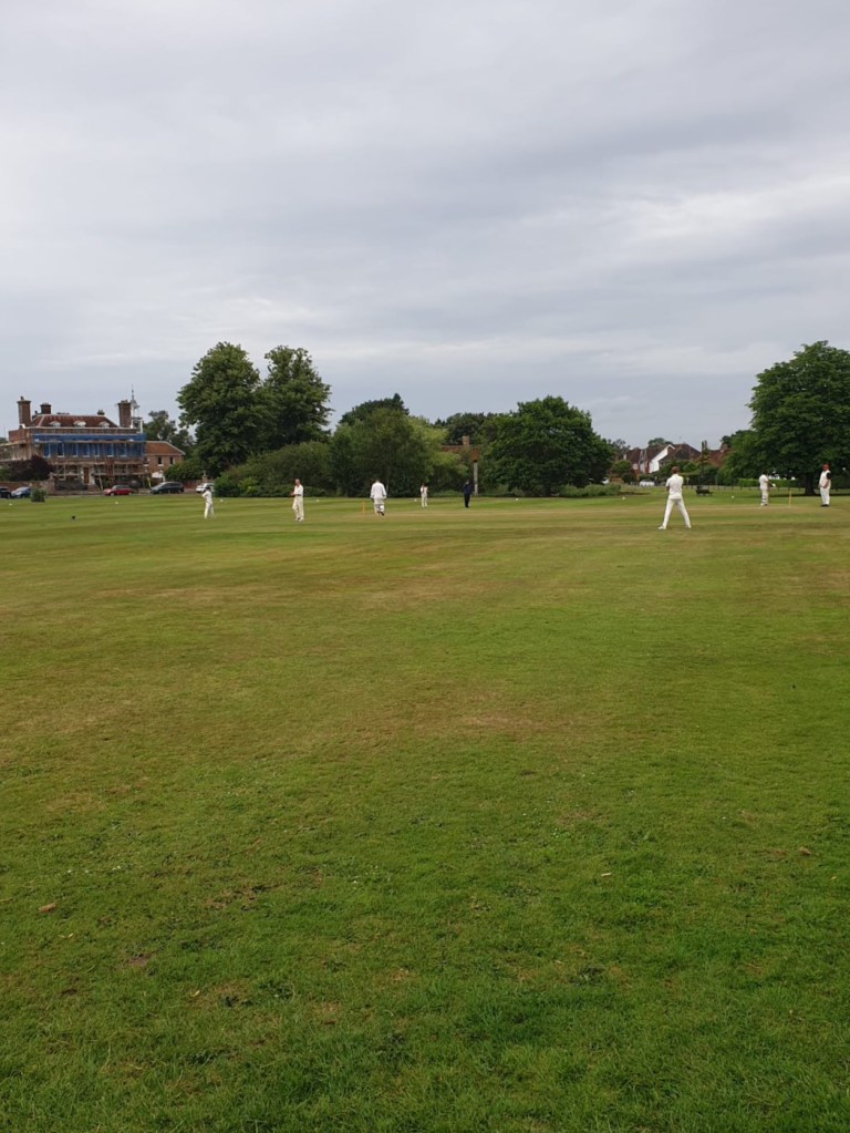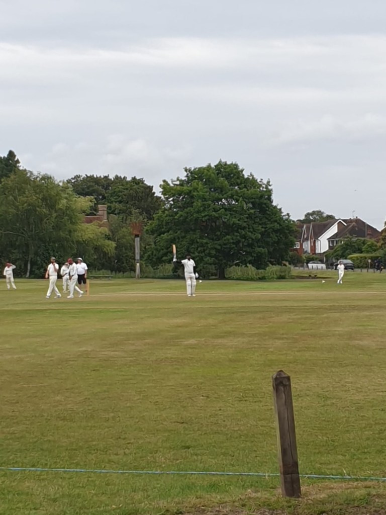 At the drinks break Matfield were roughly level with our score at the same stage, and both sides had all to play for. Reece Overy looked in really good touch as he went to his fifty, and with Jack Sheer supporting him well, they were handily placed with 12 overs to go. Amit, mixing up pace and spin with ease, broke the stand as he bowled Sheer with a beauty – but at the other end, skipper Shanmu was settling into a really good spell which set us on the path to victory. He got the vital wicket as Overy pulled to Vivek at square leg, and then followed up by dismissing the dangerous Sunny Deevi as Pradesh held on to a skier at point. Hal Cooper has been a thorn in our side in the past, and was starting to find his range – but it was Amit who struck the next blow as he rattled his stumps.