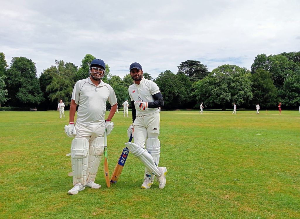Mathan Olaganathan refused to be overawed by the situation, flicking his second ball for 4 off his toes and somewhat calming my captain’s nerves. Matt and Mathan dug in against some excellent bowling, with Mathan showing a full range of glorious shots at one end while Matt negotiated challenging bowling at the other.