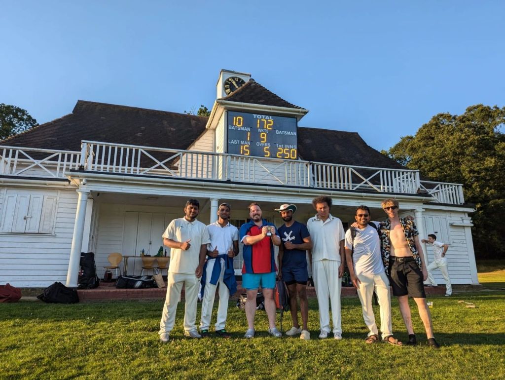 Chiswick House is one of the most stunning venues we’ve played at – complete with impressive electronic scoreboard – and it was a delight to make a return after over a decade away. I won the toss and decided to bat – but It quickly became apparent the pitch was uneven, some balls rearing up and others shooting through. But that didn’t stop us getting off to an excellent start, as debutant Mathan Olaganathan, who’d responded to our latest call-out for players on The Fixture List, and Harshad Keskar, making a welcome return to Allstars cricket after injury, began positively. On a fast outfield, the boundary count mounted up quickly, as they put on a run-a-ball opening stand of 31.